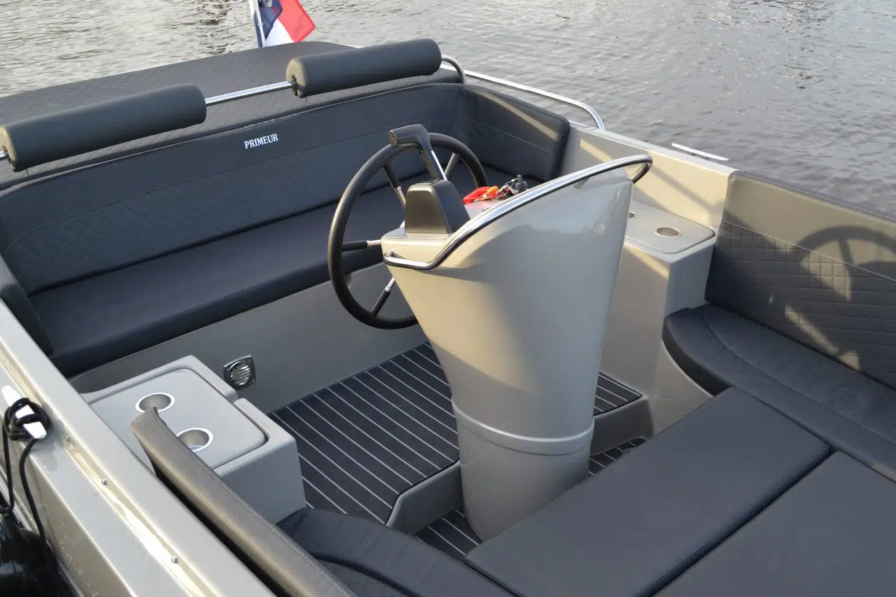 Sloepen en tenders van Primeur bieden de beste waarde voor je geld, doordat ze standaard van alle gemakken zijn voorzien. Van een zwemtrap, navigatieverlichting en waterlijn, tot een railing op de console, een 12V-lader en de HPL-teakline vloer.
